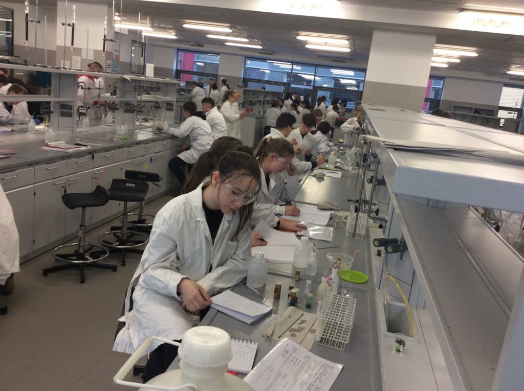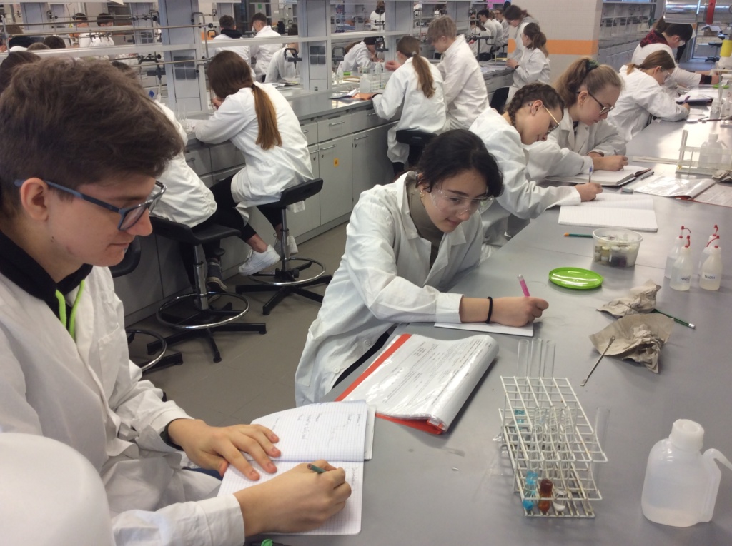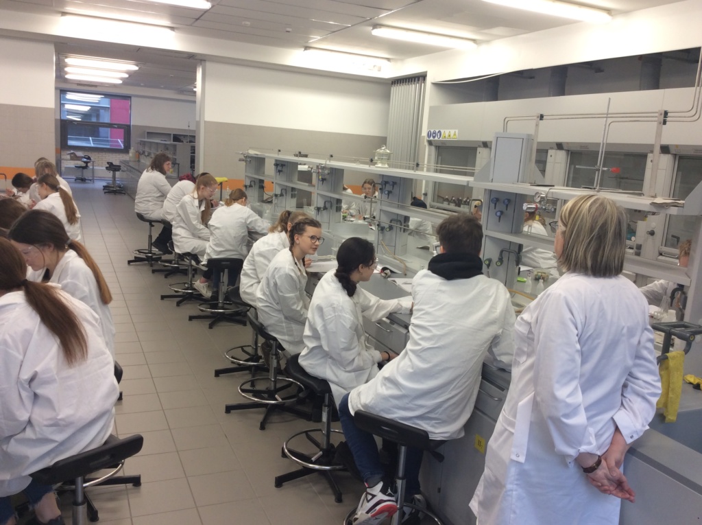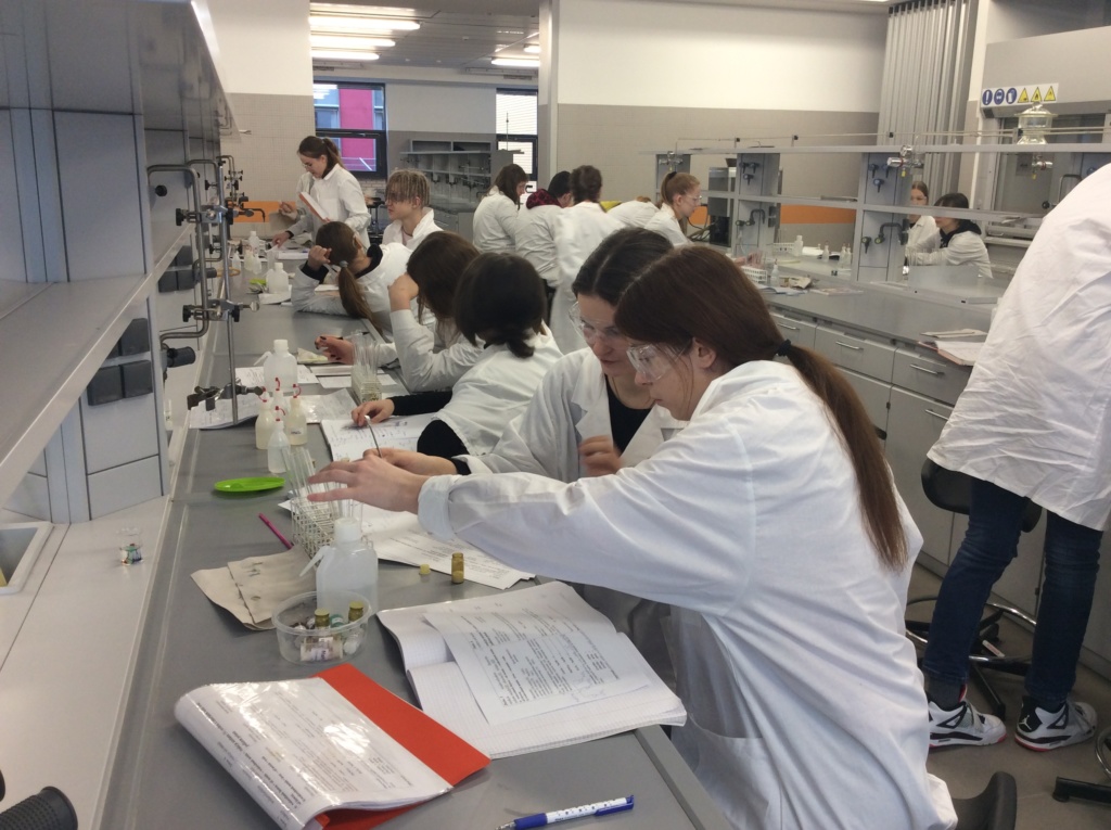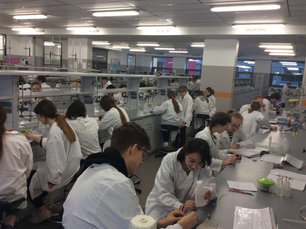 W dniu 21.02.2020 uczniowie klasy 1 Pc kształcili swoje chemiczne umiejętności w pracowni chemii nieorganicznej Wydziału Chemii UAM pod kierunkiem pracowników naukowych. Tematem zajęć były „Sole”. Uczniowie różnymi metodami i z dużym zaangażowaniem otrzymywali sole nieorganiczne.