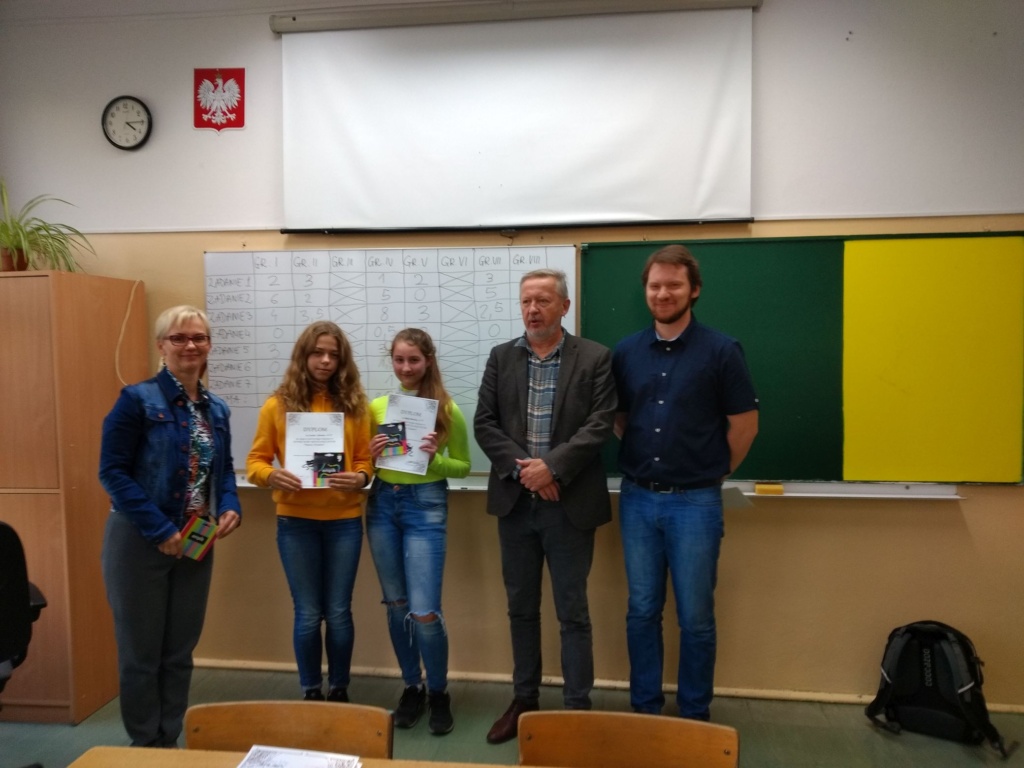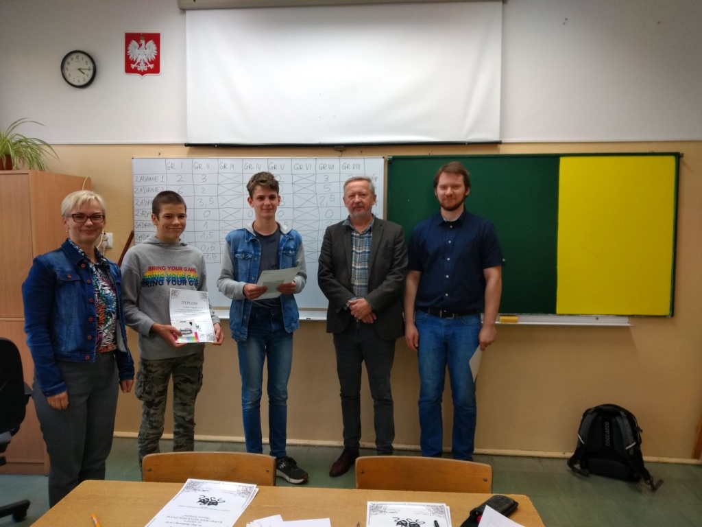 Uczestnicy po każdej konkurencji na bieżąco dowiadywali się, ile punktów uzyskali, co podtrzymywało napięcie i skutecznie motywowało do dalszej wytężonej pracy. Po zakończeniu rywalizacji pan dyrektor wręczył zwycięzcom dyplomy oraz nagrody rzeczowe.